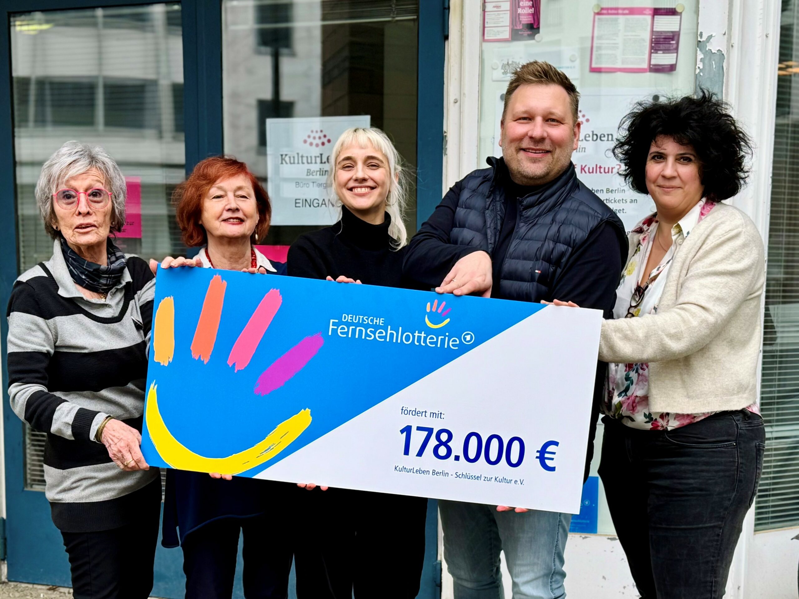 Bei der offiziellen Fördermittelübergabe der DEUTSCHEN FERNSEHLOTTERIE konnte sich unser Verein KulturLeben Berlin – Schlüssel zur Kultur e.V. über eine zweckgebundene Förderung in Höhe von 178.000 Euro freuen. Die Förderung kommt unserem Projekt „Einsam muss nicht sein. Würdevoll altern in Berlin durch kulturelle Teilhabe“ zugute.