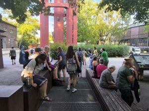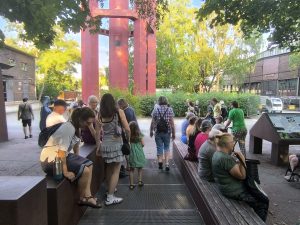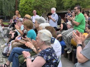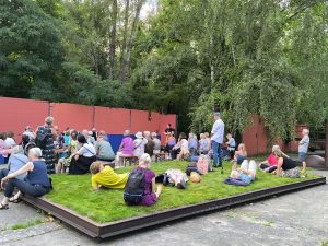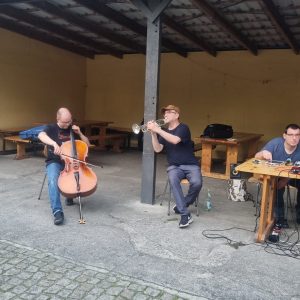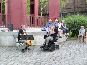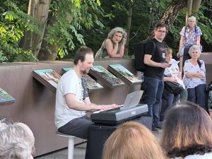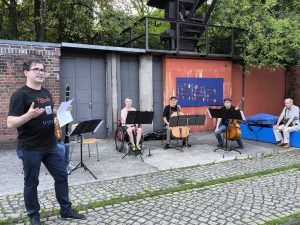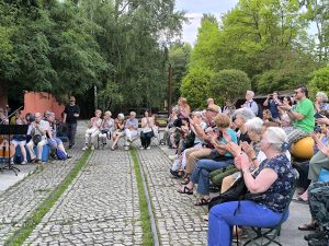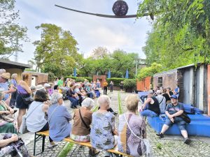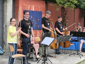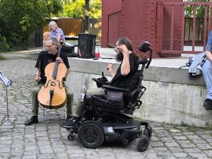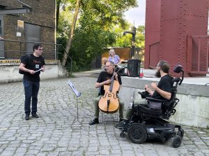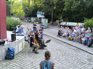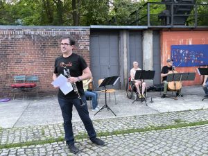 Den stimmungsvollen Abschluss bildete eine Performance des inklusiven elektronischen Musikprojekts „Ohnmacht“, das im Skulpturengarten für tanzbare Beats sorgte. Das Projekt wurde im Rahmen unseres inklusiven Projekts Bühne frei! koordiniert und brachte noch einmal ganz andere Klänge und Energie in den Abend.