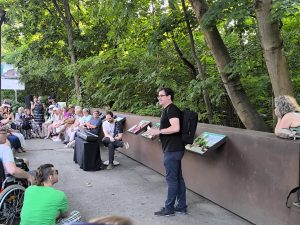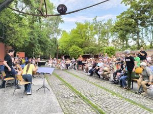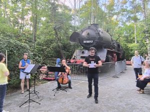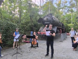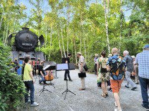 Kuratiert von Paul Brody und unter der musikalischen Leitung und charmanten Moderation von Mariano Domingo verwandelten Kammermusik-Ensembles des Orchesters den Park in eine Bühne unter freiem Himmel. Die Musiker*innen spielten an acht verschiedenen Stationen – jede mit ihrer eigenen akustischen und atmosphärischen Besonderheit: vom offenen Platz über einen schattigen Tunnel bis hin zu einer alten Lokomotive und den Überresten industrieller Vergangenheit. Der barrierefreie Pfad ermöglichte es allen Besucher*innen, den musikalischen Stationen zu folgen und dabei die besondere Verbindung zwischen Klang, Raum und Natur zu erleben.